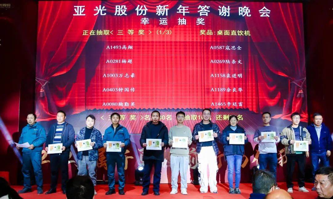 為了讓每一位嘉賓都能感受到驚喜與歡樂,亞光股份精心準備了豐富多樣的獎品,并設置了多個等級。從高端電子產品,如平板電腦,智能手表,到家用電器,如飲水機、養生壺,貼心考慮大家的實用性,并確保每一位參與者都可以獲得自己的小確幸。
